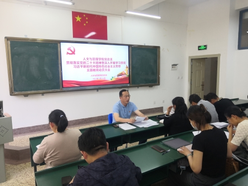 云中讯(通讯员 赖俊伟)2023年4月20日下午,人文与管理学院党总支在博通楼5102教室召开学习贯彻习近平新时代中国特色社会主义思想主题教育动员大会,党总支委员、支部书记以及47名师生党员参加了大会。