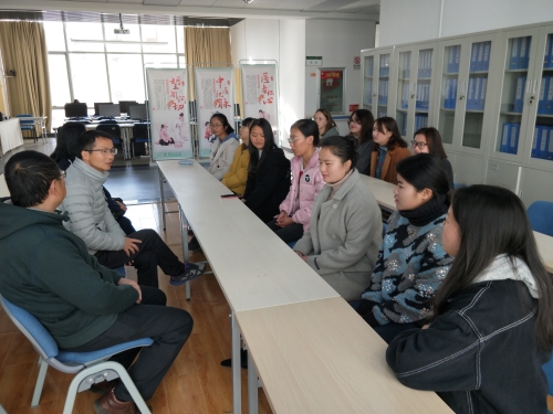 当天下午,学院副院长章涤凡、教学科研管理办公室主任李维宇、应用心理教研室主任马定松、2015级市场营销班班主任耿慧一行4人先后到昆明金域医学检验所有限公司及云南省健康教育所看望了市场营销和应用心理学专业的实习生,并与实习单位领导及实习生座谈交流。座谈会上,章涤凡及相关老师深入了解了实习生工作、学习、生活等方面的详细情况,要求同学们严格遵守校纪校规及实习单位的工作纪律,特别叮嘱同学们注意实习期间的人身、财产安全。