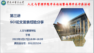 截止到3月24日,学院已开展了四期“学术冲浪”活动:即第一期——建设中医药政策高端智库,“管理人”大有可为(章涤凡);第二期——2022年国家社科基金项目申报经验交流(陈守聪);第三期——3.SCI论文发表经验分享(于博);第四期——Endnote 在论文写作中的基本应用(耿慧)。