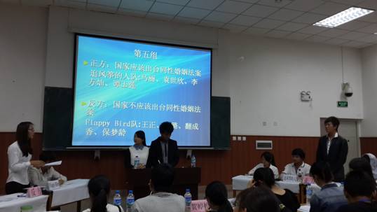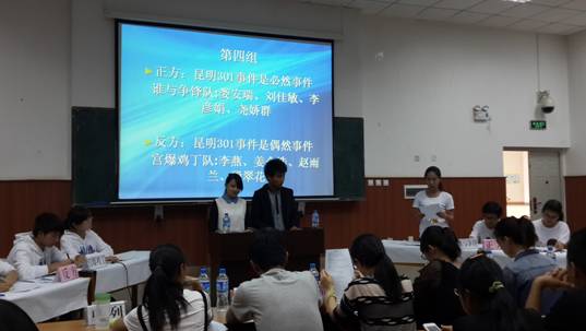 第二个辩题为“昆明301事件是必然还是偶然事件”,正方辩手为“谁与争锋”队,辩手分别是娄安瑞、刘佳敏、李彦娟、尧娇群,其观点是昆明301事件是必然事件,反方辩手为“宫爆鸡丁”队,辩手分别是李燕、姜金浩、赵雨兰、殷翠花,其观点是昆明301事件是偶然事件。双方辩手针对辩题进行了激烈辩论。第三个辩题为“国家是否应该出台同性婚姻法案”,正方辩手为“追风筝的人”队,辩手分别是马丽、袁世欣、李方灿、谭玉莲,其观点是国家应该出台同性婚姻法案,反方辩手为“Flappy Bird”队,辩手分别是王正、汪璐、翻成香、保梦龄,其观点为国家不应该出台同性婚姻法案,双方辩手针对辩题进行了激烈讨论。