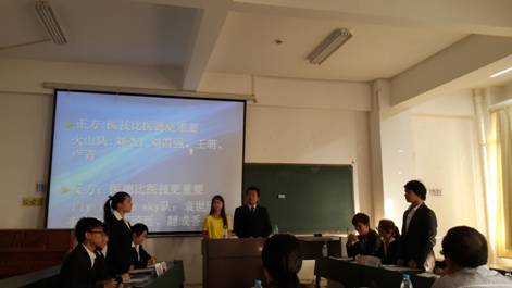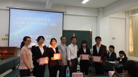 2014年4月21日下午6点,人文与管理学院在佩衡管205教室举行第八届“舌战杯”辩论赛决赛,出席此次比赛的评委有人文与管理学院院长熊官旭,副院长谢晓如以及贺婷婷老师。